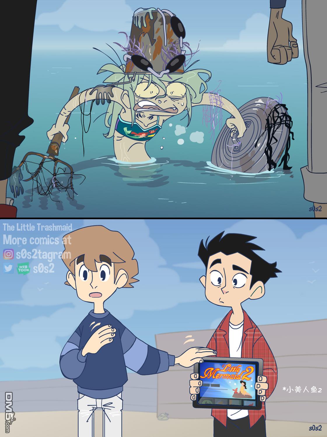 被海洋垃圾污染后的小美人鱼